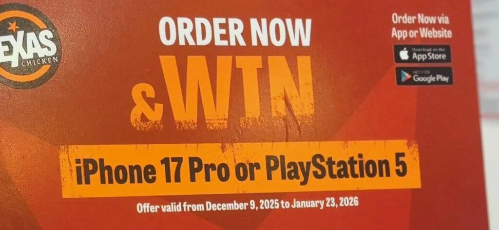Or through the Texas Chicken app & website.