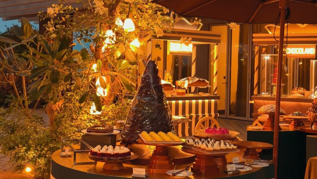 End your evening on a sweet note at the Dessert Garden, featuring 7 dessert stations including: Cotton Candy, Chocoland, Candyland, Berliner, Kunafa, Ice Cream, Fresh Fruits, plus a spectacular central display filled with a variety of traditional Ramadan sweets.